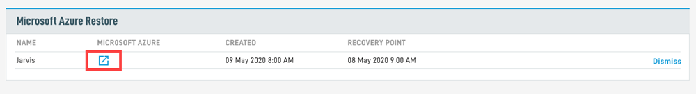 1. Once the restore completes, click the link that appears in the MICROSOFT AZURE column of the Microsoft Azure Restore card. to access the restored image in your Microsoft Azure environment.